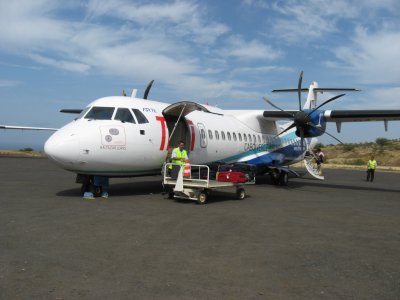 Nach ein paar Tagen Akklimatisierung in Sal fliegen wir über Santiago nach Fogo. Der Flugplatz ist sehr klein, mit grösseren Flugzeugen könnte man wegen der kurzen Landebahn nicht landen.