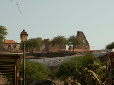 in der Nähe von Praia. Der Ort wird mit Hilfe des spanischen Königshauses instandgehalten. War früher der Umschlagplatz für Sklaven. Auf dem Bild sind die Überreste der Kathedrale zu sehen. Die katholische Kirche hatte sie in ihrer unendlichen Güte, allerdings unter etwas eigenwilliger Auslegung der Worte Christi gebaut um die Sklaven unter Zwang zu taufen, da sie dann einen höheren Handelswert hatten. Diesen sowie zahlreiche anderen Teile der katholischen Geschichte findet man natürlich nicht in den Religionslehrbüchern. Die Steine der Kathedrale wurden später als Baumaterial für die umliegenden Häuser verwendet.