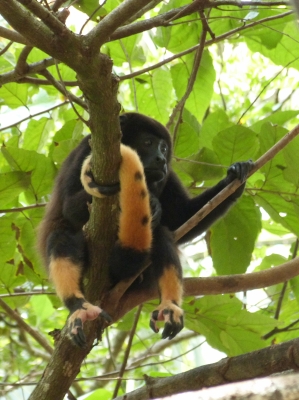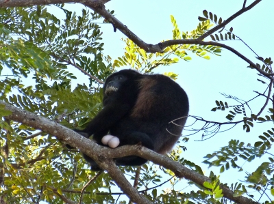 Und das ist ein Vertreter der heulenden Spezies. Ihre anderen Kollegen machen aber den viel grösseren Krach, indem sie noch unreife Früchte auf die Dächer der Hütten werfen. Vor allem früh am Morgen.