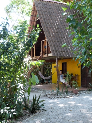 In dieser Cabana dürfen wir einige Tage verbringen. Im Howler Monkey Hotel.