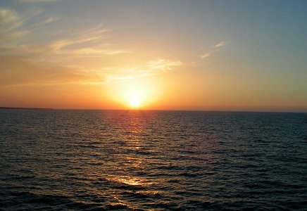 Der Tagesausflug geht zu Ende: Sonnenuntergang auf der Fähre.
