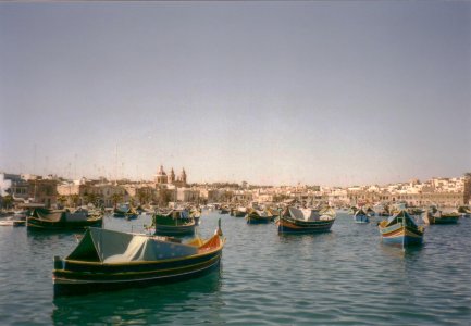 Boote in Marsaxlokk, hohe Klippen im Süden
