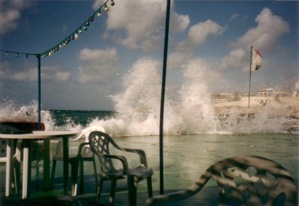 An windigen Tagen kann es schon einmal passieren, dass man im Kaffehaus an der Promenade unfreiwillig geduscht wird.